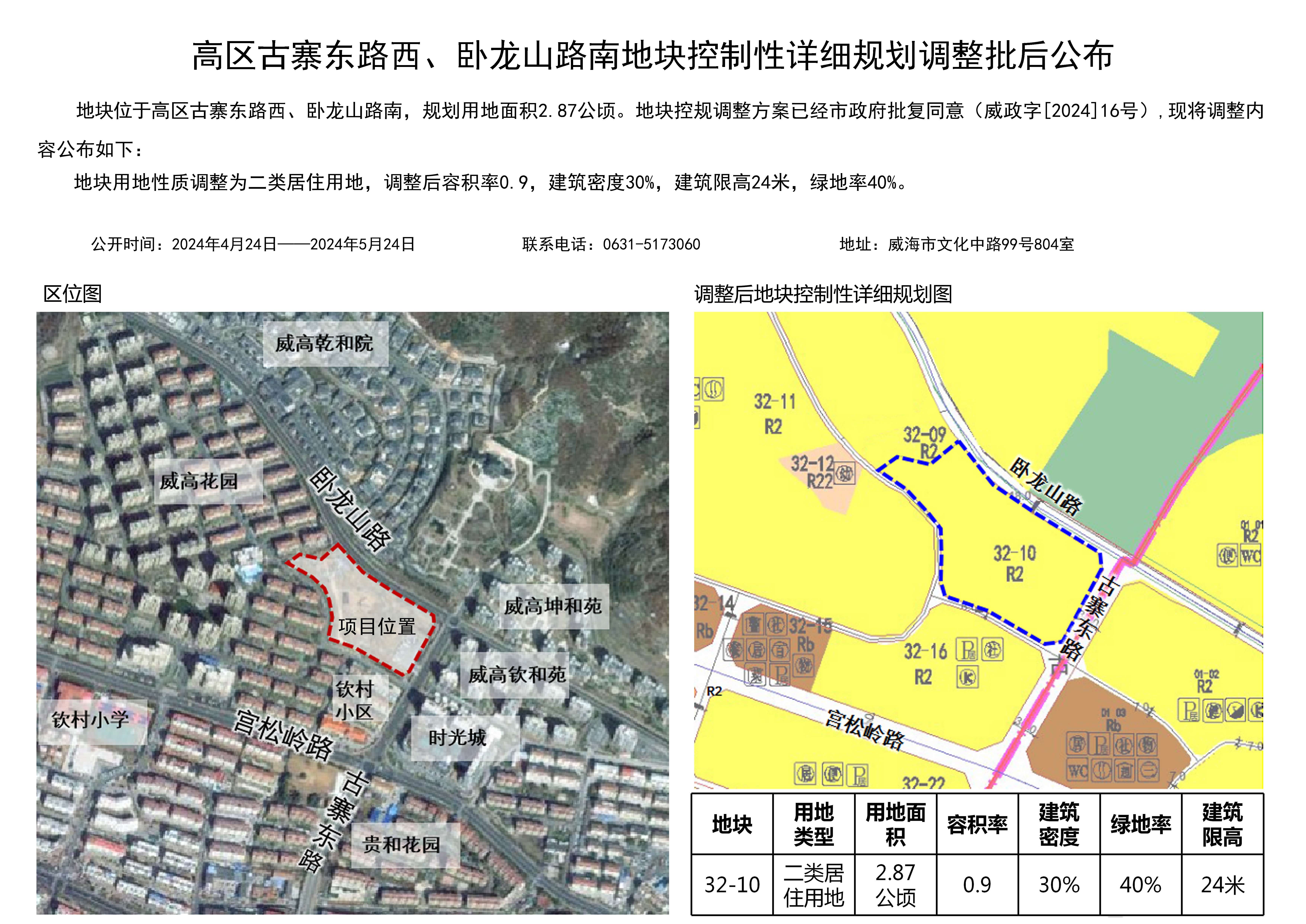 高区古寨东路西、卧龙山路南地块控制性详细规划调整批后公布