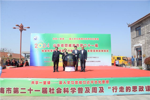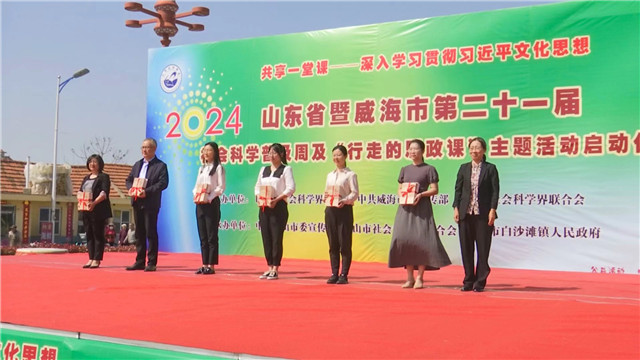 5月14日,山东省暨威海市第二十一届社科普及周及“行走的思政课”主题活动启动仪式在乳山市白沙滩镇白沙滩村举行。