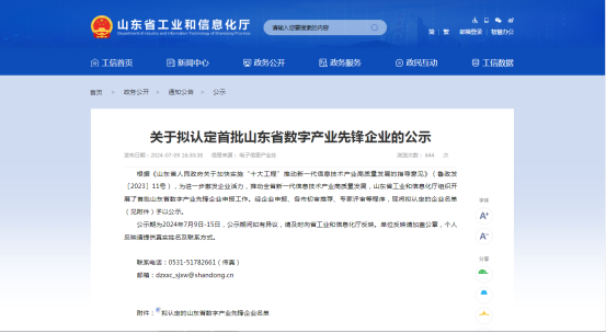 近日,省工信厅公示首批山东省数字产业先锋企业拟认定名单,渔翁信息技术股份有限公司榜上有名。