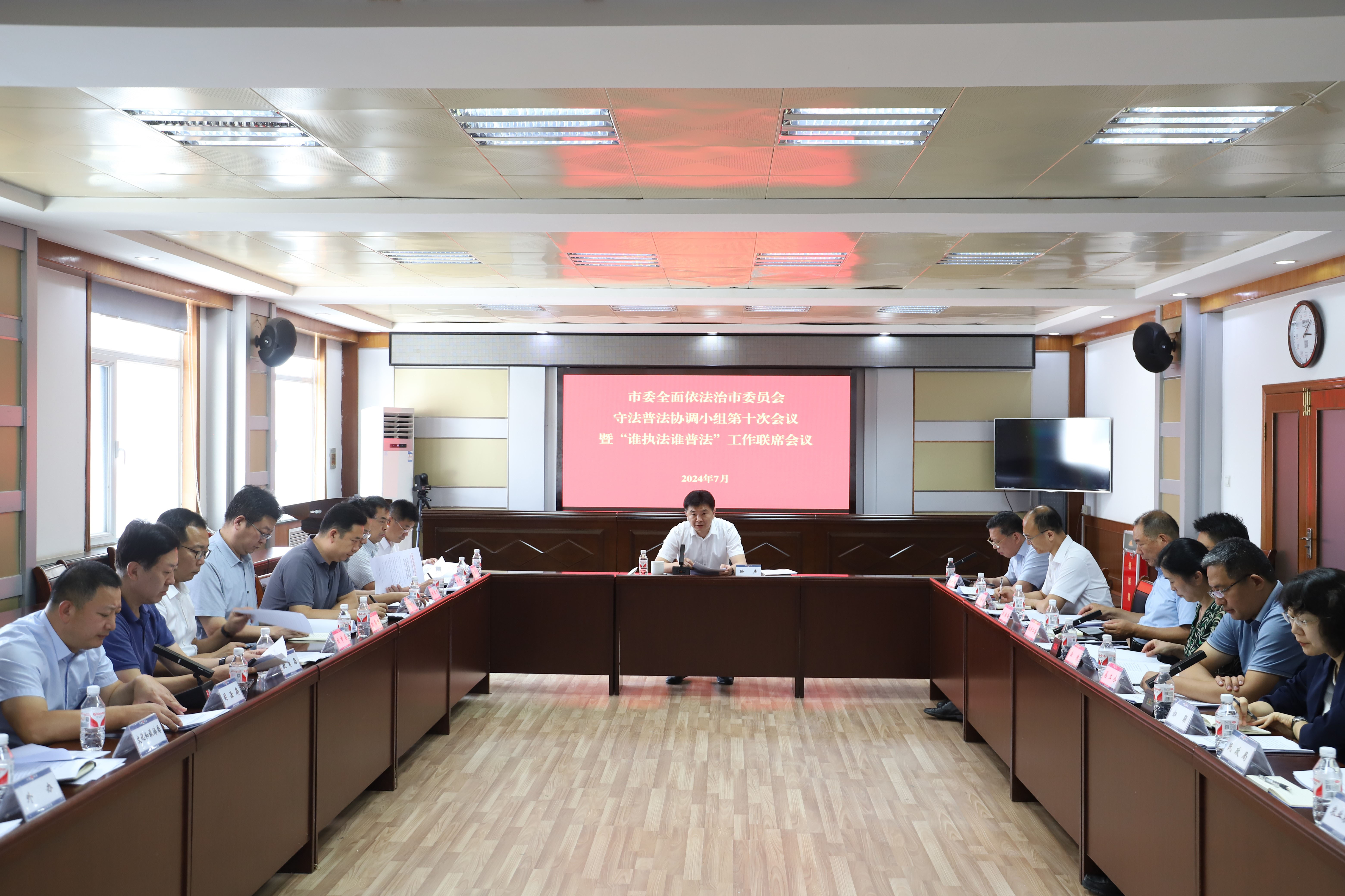 7月8日,市委全面依法治市委员会守法普法协调小组第十次会议暨“谁执法谁普法”工作联席会议召开,市委常委、宣传部部长,市委全面依法治市委员会守法普法协调小组组长徐杰出席会议并讲话。