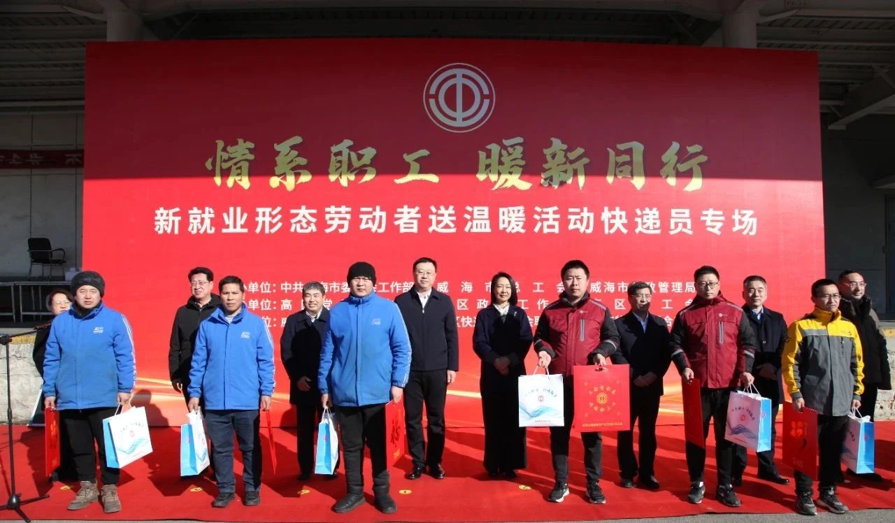 1月20日上午,“情系职工 暖新同行”新就业形态劳动者送温暖活动快递员专场活动在威高物流园举行,来自区内中通、圆通、韵达等快递公司的100多名快递员代表参加活动。市委社会工作部、市总工会、市邮政管理局负责人,区领导于志昂等出席活动。
