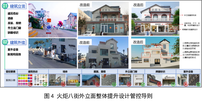 威海市自然资源和规划部门编制《火炬八街街区外立面整治提升设计管理导则》,规范建筑外立面改造样式、材质、色彩、外摆尺寸、招牌导引等要素,跳出传统大拆大建式改造逻辑,在“小尺度”、“微改造”上下绣花针功夫。引导业户充分利用沿街外摆和墙体,规范美观改造建筑门窗、广告、外摆、小品等,既活化了街区商业氛围,又丰富了城市空间肌理。