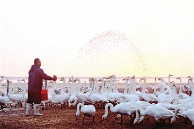 荣成大天鹅国家级自然保护区管理服务中心烟墩角保护站副站长陈璐告诉记者,大天鹅来临之前,保护区内人工增殖大叶藻,同时购置玉米作为大天鹅的食物储备。