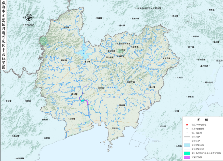 2.威海市文登区河道采砂分区规划示意图