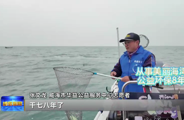 威海市华益公益服务中心志愿者张文龙说,干七八年了,平时出海的时候看见有漂浮物或者垃圾,随手就捞起来了。包括钓鱼这些人从以前随手扔到随手捡,威海本身就是卫生城市,路面干净了,那海水也是,旅游旺季的时候,拉那些游客,看见我们水这么清,海这么蓝,游客也愿意来。