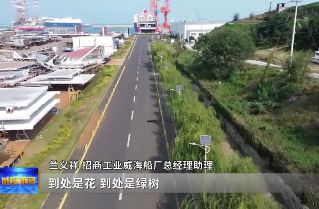 兰义祥说,他们整个厂区是打造花园工厂,到处是花,到处是绿树,海边还有海边公园的文化长廊,还有智慧工厂,四周也是打造绿色文化圈,“十四五”期间整个厂区绿化能达到7到8万平方以上,还有一块是清洁能源,再看那是屋顶光伏,下面是太阳能路灯,现在他们在环保方面的投入已经转化成公司的软实力了,甚至是招商工业威海船厂品牌影响力都有大的提升。