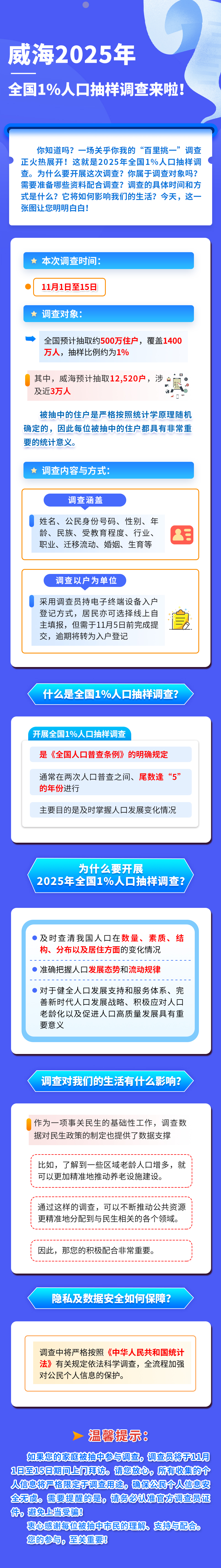 一图读懂丨威海2025年全国1%人口抽样调查来啦!