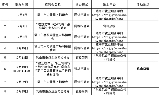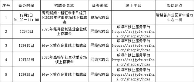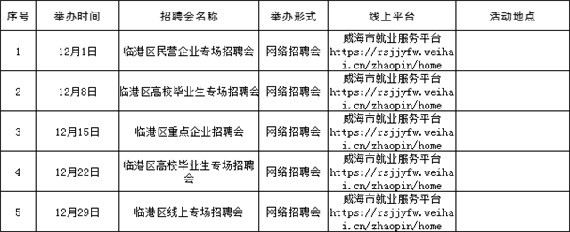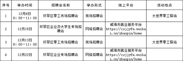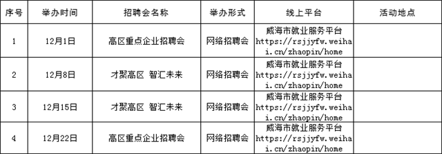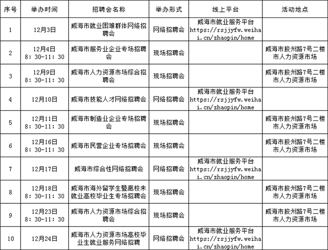 温馨提示:本公告内容为计划安排,请以各区市具体活动公告等信息为准,建议招聘单位和求职者提前电话咨询或留意相关公众号或网站公告。(来源:Hi威海客户端)