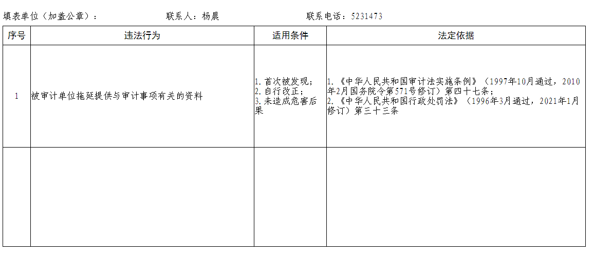 威海市审计局轻微违法行为不予行政处罚事项清单