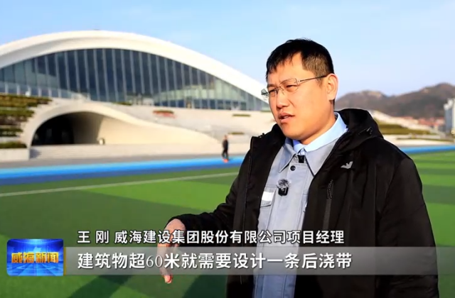 威海建设集团股份有限公司项目经理王刚说,如果是通常施工,建筑物超60米就需要设计一条后浇带,它需要进入施工两个月之后才允许浇筑,这样的话在工期方面就没法满足了,而且后浇带渗水隐患特别大。所以他们当时多次论证采用“跳仓法”施工。