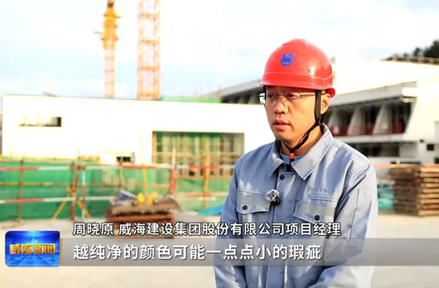 威海建设集团股份有限公司项目经理周晓原说,普通的清水混凝土难度已经很高了,但是作为白色,更加难上加难,因为它对原材料的纯度,配比的精度、浇筑的温度和振捣工艺的标准都非常高,越纯净的颜色可能一点点小的瑕疵,它就可以无限放大。