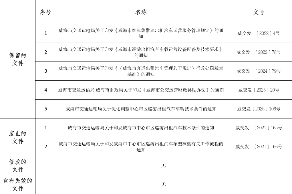 威海市交通运输局2025年度规范性文件清理说明