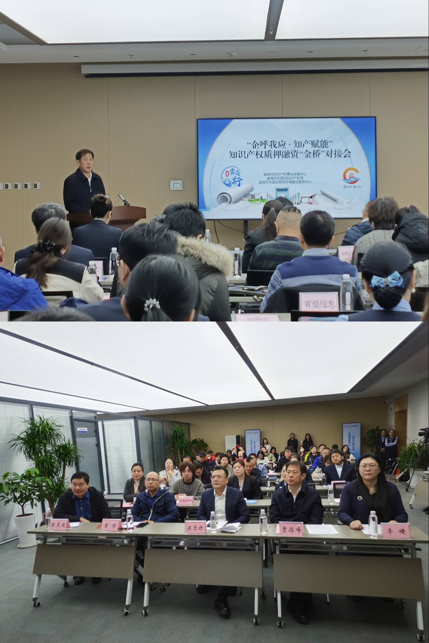为深化知识产权金融服务,盘活企业无形资产,打通银企信息壁垒,12月5日上午,环翠区知识产权局联合威海市知识产权事业发展中心、环翠区营商环境建设服务中心,共同举办知识产权质押融资“金桥”对接会。中国银行、威海银行等5家金融机构代表及32家企业负责人参会。