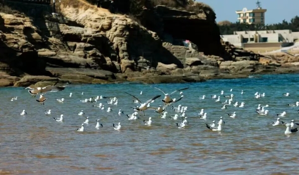 蓝天为底,海鸥为墨,海浪为韵,成为这里冬日动人的画卷。