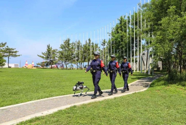 同时,警用机器狗具备全天候作业、高危场景替代、智能预警等优势,可通过远程语音系统实现非接触式喊话疏导,结合女警现场调解,构建起“远程管控+智能感知+柔性服务”的智慧警务新模式。