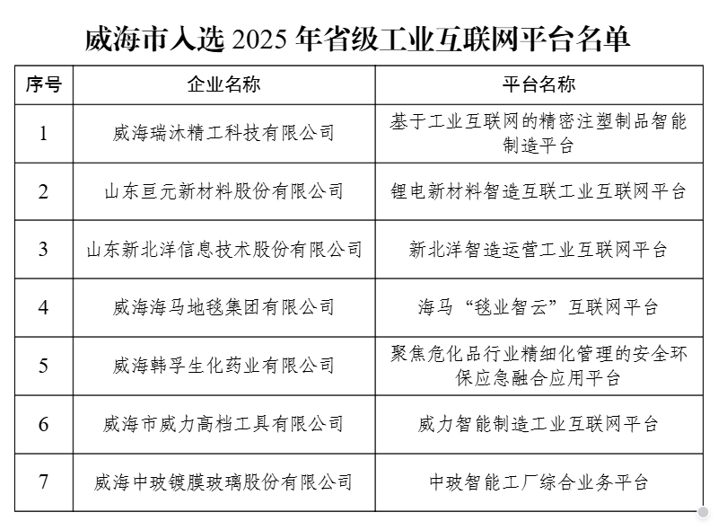 近年来,我市通过开展“工赋威海·数智引航”行动,持续壮大工业互联网平台体系,加快推进工业化和信息化深度融合发展,产业支撑能力显著增强。截至目前,我市共有国家级特色专业型平台2个、省级工业互联网平台21个,省级以上工业互联网示范标杆达到76个。