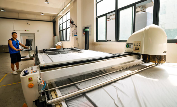 自动裁剪机如同精准的 “剪刀手”,将原材料按设计图纸裁切成规整部件,一天即可完成两千个板材的裁剪;热合机以恒定的温度与压力,让产品接缝处牢固又平整……随着自动裁剪机、自动点焊机、热合机等自动化设备的引进,原来一个要40多人的车间现只需要12人左右,不仅如此,ERP、MES、WMS 等软件系统高效联动,打通了生产加工的各个环节,实现智慧管控、能源节能管控、智慧采购、智慧排产、智慧生产、智能仓储。