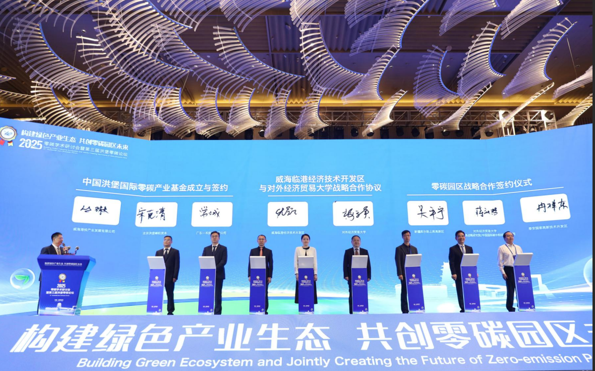 在大会签约环节,威海临港经济技术开发区与对外经济贸易大学签署的战略合作协议签约仪式、零碳园区战略合作签约仪式、中国洪堡国际零碳产业基金成立暨签约仪式同步举行,成功推动零碳园区建设运营领域的合作迈出坚实一步。