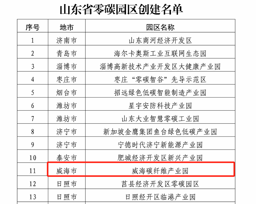 近日,山东省发展和改革委员会、山东省工业和信息化厅、山东省能源局联合公布《山东省零碳园区创建名单》,位于临港区的威海碳纤维产业园入选,成为威海市唯一上榜园区,标志着临港区在绿色低碳转型和产业生态融合方面迈出关键一步。
