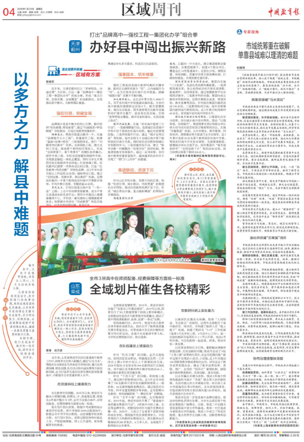 1月23日,中国教育报以《全市3所高中在师资配备、经费保障等方面统一标准》为题,报道威海荣成市县域高中经验做法。
