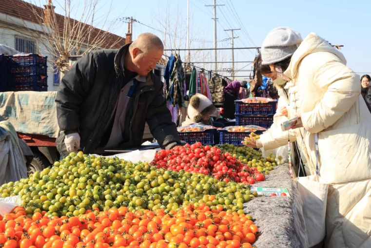 “都是现串现裹的,酸甜可口,孩子们最爱吃。临近过年的大集销量比平时增加很多,尤其是山楂糖葫芦,通红看着也喜庆。”冯阳国笑着招呼顾客,手中的活儿却不停歇,一串串冰糖葫芦,裹着糖衣,也裹着新春的甜蜜。