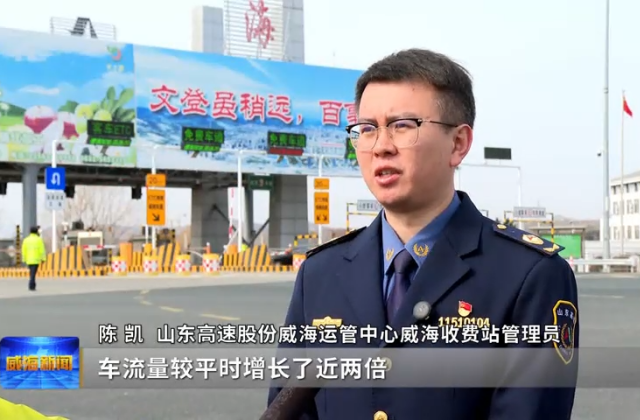山东高速股份威海运管中心威海收费站管理员陈凯说,截至目前,威海收费站出入口车流量较平时增长了近两倍,主要以返程的小型客车为主,面对车流突增的情况,威海收费站出入口均开启三条专用通道,安排专人引导分流,便民服务厅全时开放,将随时关注车流动态,确保广大司乘朋友安全顺畅返程。