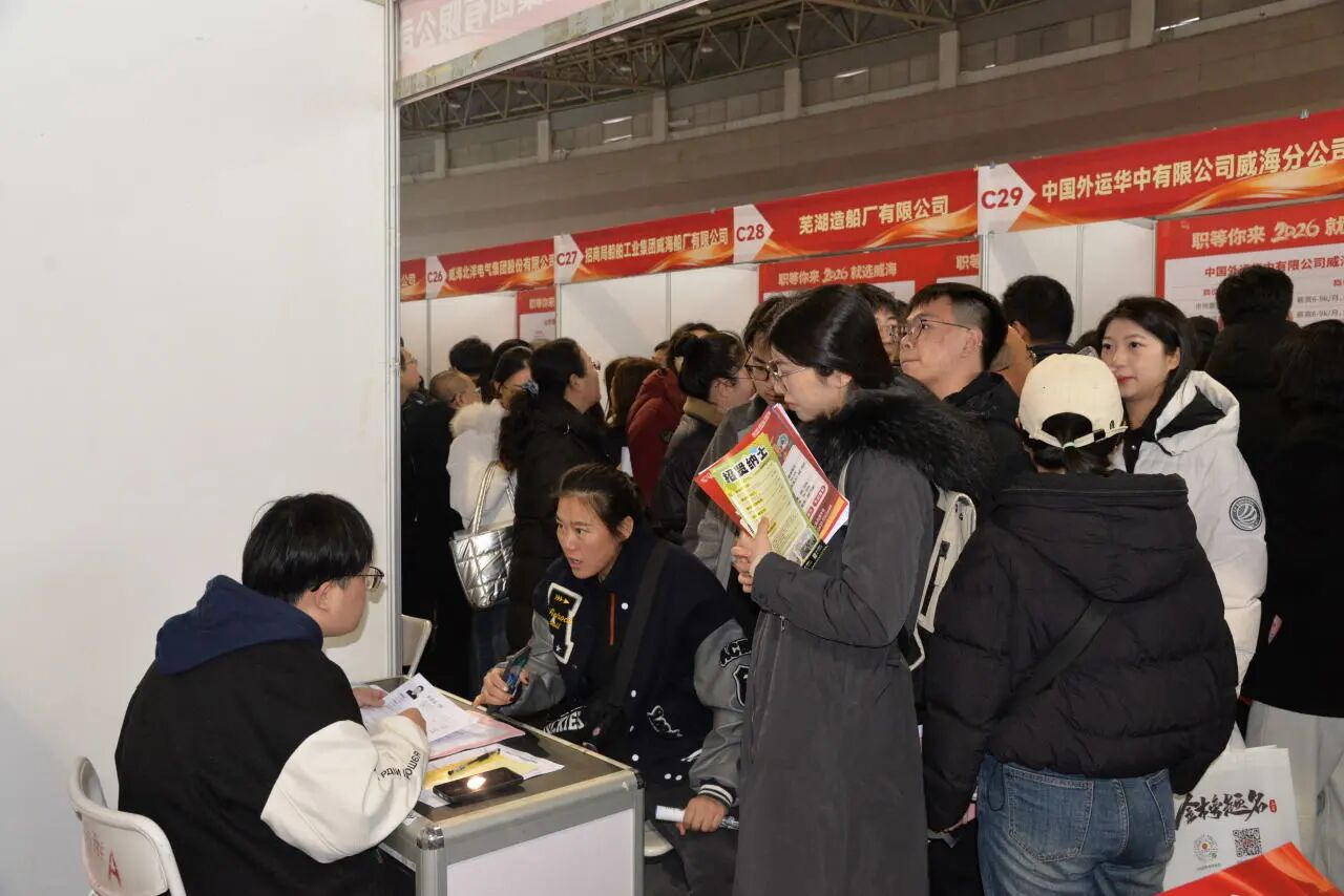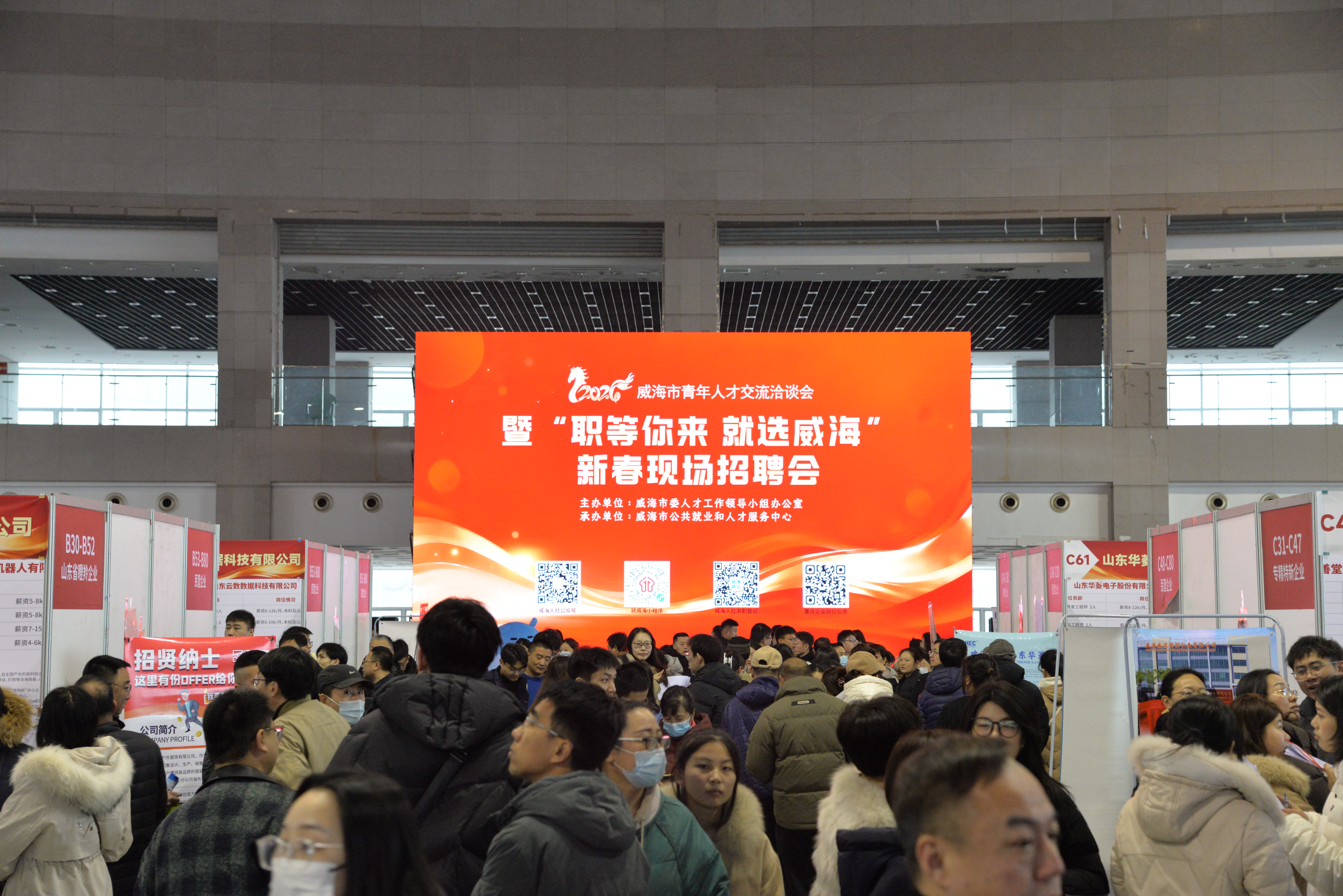 为全面落实省加力推进稳就业工作视频会议精神,强化企业招工引才服务,助推城乡劳动者稳定就业,2月26日,由威海市委人才工作领导小组办公室、市人社局主办的2026年威海市青年人才交流洽谈会暨“职等你来 就选威海”新春现场招聘会,在国际展览中心C馆举办。本次招聘会是我市“春风暖威 海惠就业”春风行动暨就业援助季的核心活动之一,受到广泛关注。活动期间,线上共有13.7万人(次)参会,1.2万名求职者现场参会,达成就业意向3700多人。