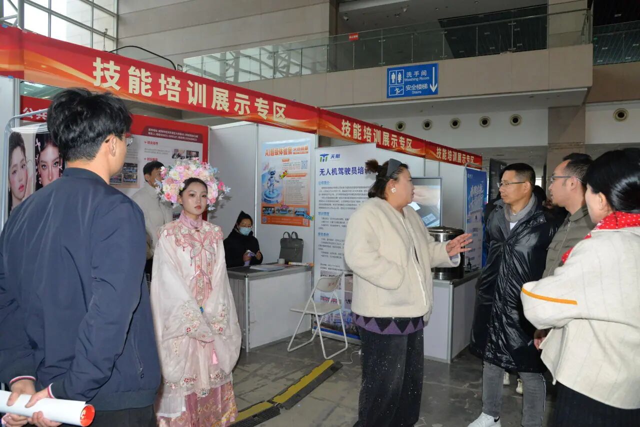 为更好满足求职者技能提升需求,招聘会现场增设技能培训展示专区,邀请多家技工院校和社会培训机构为求职者搭建起技能提升的对接平台,通过滚动播放培训视频、陈列特色课程展板、发放宣传折页等多种形式,集中展示电工电子、家政服务、养老托育、新媒体运营等贴合市场需求的精品培训项目,引导求职者报名参与“技能照亮前程”职业技能提升行动,助力大家补齐技能短板、增强求职转岗能力。