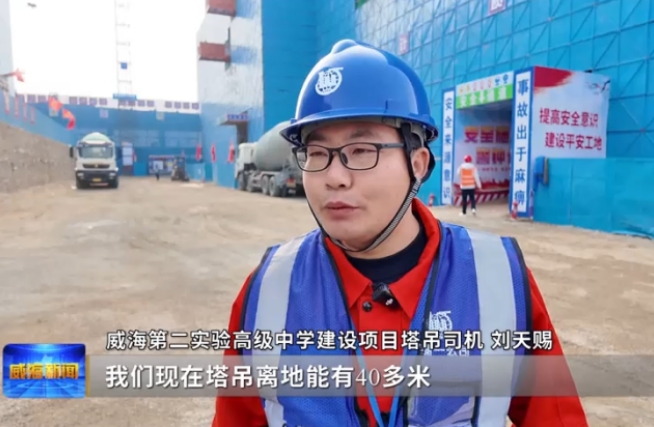 威海第二实验高级中学建设项目塔吊司机刘天赐说,现在塔吊离地能有40多米,现在在上面一天工作量基本上一天要转100多圈,在上面看着楼层是很快的,一层一层地起来,离自己越来越近,感觉到非常自豪。