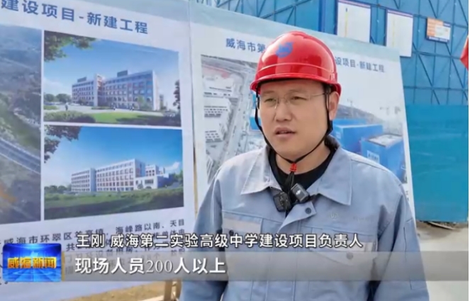 威海第二实验高级中学建设项目负责人王刚表示,基本是一个月挖土一个月干主体,现场人员200人以上,包括设备器材也都是饱和式在这施工,计划是6月底全面完工并交付使用。