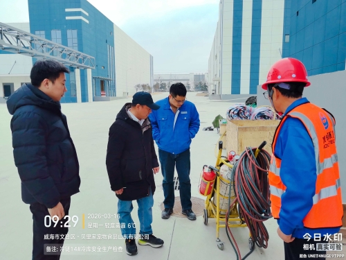 3 月16 日,检查组深入综保区南区开展专项检查,重点对水产品流通项目14# 冷库制冷设备及配套附属设施设备安装工程进行全面排查。围绕消防设施、气罐使用、电切割锯作业等关键环节,实施全方位、无死角、拉网式检查,切实筑牢安全防线,做到防患于未然。