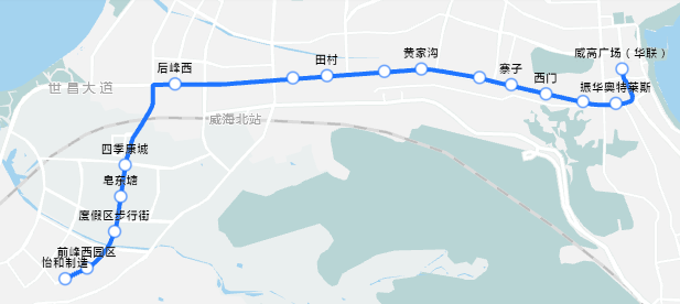 2.站点设置:威高广场(华联)、振华奥特莱斯、财金中心(农贸市场)、西门、寨子、怡心苑小区、黄家沟、王家庄、田村、华田小区、后峰西、四季康城、皂东塘、度假区步行街、前峰西园区、怡和制造。