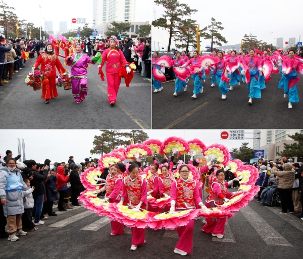 四支表演队伍各具特色,纷纷拿出了看家本领。初村镇的“初彩”秧歌队作为本土文化名片,表演极具渲染力。队伍中,年纪最大的队员72岁的陈学永激动地表示:“今年活动真热闹,看到大家这么喜欢,我们演出也更有劲头。”年纪最小的队员12岁的孙中睿说:“参与民俗展演很有意义,可以把欢乐带给更多人,也让我的寒假更充实。”与此同时,怡园街道的花伞表演绚丽多姿,田和街道的锣鼓队气势磅礴,高区管委的花车队伍造型新颖,每一个方阵都用自己的方式传递着对美好生活的祝福。