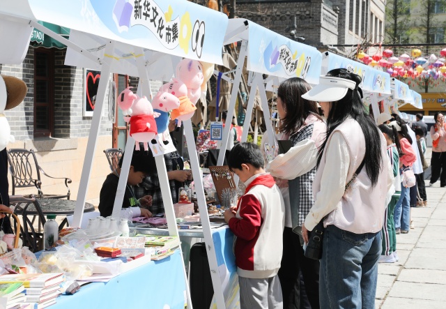 在活动主会场栖霞街,“赶海拾趣”文化市集人流如织。市集设置图书展销、文化展示、休闲餐饮、文娱互动四大功能区,“一站式”提供阅读打卡、非遗文创、特色好物、科普互动、亲子阅读、轻食茶饮等体验。