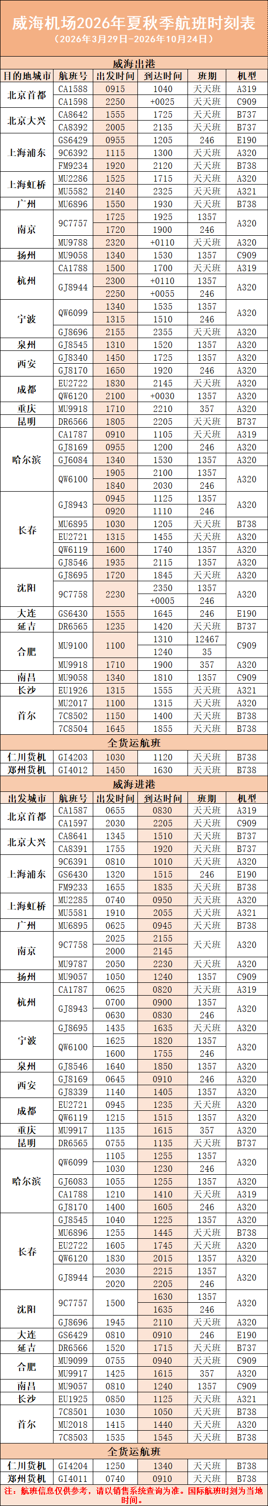 威海机场巴士站点免费接驳服务上线!附最新航班、巴士时刻表