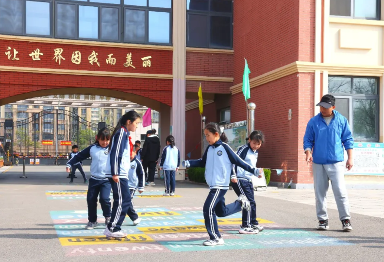 与传统单一的跑操、广播体操不同,如今草庙子小学的大课间更具针对性与趣味性。学校打造“地面游戏+知识融合”特色活动,把英语学习融入跳房子、打沙包、水果蹲、星期蹲等传统游戏,让学生在玩耍中巩固知识、提升团队协作能力。同时,学校科学编排跳绳、跑步、仰卧起坐、体能操等基础项目,合理搭配运动负荷,穿插古诗韵律操、深呼吸、拉伸操等内容,将体育与德育、美育深度融合。