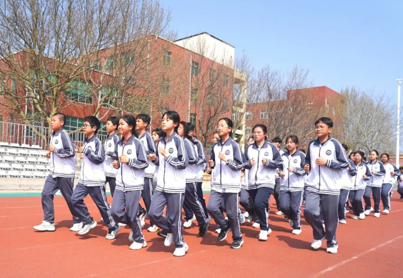 上午9点45分,威海市第十四中学的大课间同样热火朝天。伴随着响亮的口号,学生们队列整齐、步伐铿锵;立定跳远、50米跑、引体向上等项目有序开展,处处展现不服输的青春朝气。