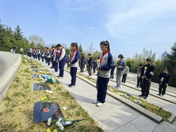 田村小学四年级30余名师生走进烈士陵园、草庙子记忆馆,开展“沉浸式”祭扫与研学活动,在实地探访中感悟英烈精神。山大实验学校、神道口中学分别组织师生徒步前往烈士陵园,以徒步祭扫的方式开展爱国主义教育,在行走中传承红色基因。