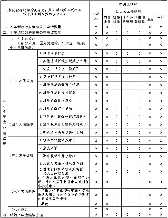 2.规范依申请公开工作。健全完善依申请公开工作机制,明确登记、审核、办理、答复、归档等工作流程。及时更新政务公开指南,按照市政府统一格式编印了政府信息公开申请表、处理流程图及依申请公开告知书等,畅通网上、信函、传真等多种渠道,方便群众提出申请。2022年共收到政府信息公开申请事项2项,同比下降50%,按时答复2件,1件为信访事项,1件为举报事项,均不作为政府信息公开申请处理。信息公开收费0元。