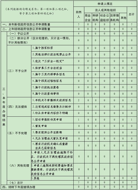 2.狠抓依申请公开办理规范化建设,以高质量办理回应群众诉求。全年新收政府信息公开申请7件,较上年同比减少36.4%,按期办结率与答复规范率均达到100%。从答复结果分类,予以公开4件,均精准提供所需信息并附指引;因信息不存在、非本机关掌握,不予处理等法定情形无法提供3件,均依法出具说明并告知获取途径。从申请内容研判,科研类、政策咨询类申请占比同比下降40%;维权类申请占比提升,建立“答复+帮扶”联动机制,联动业务科室提供政策指导。全年未发生因信息公开引发的行政复议、行政诉讼案件,实现办理质量与群众满意度双提升。